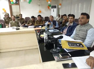 अलीगढ़ /लोकसभा चुनाव 2019 की नामांकन प्रक्रिया व सुरक्षा व्यवस्था को लेकर डीएम व जिला निर्वाचन अधिकारी श्री चन्द्र भूषण सिंह ने आज पुलिस व प्रशासनिक अधिकारियों के साथ बैठक कर तैयारियों की समीक्षा की। समीक्षा के दौरान डीएम श्री सिंह ने सुरक्षा व्यवस्था के नोडल अधिकारी एसपी ग्रामीण श्री मणिलाल पाटीदार को निर्देश दिया कि कलेक्ट्रेट में अभेद्य सुरक्षा व्यवस्था की जाए जिसके लिए आज से ही कलेक्ट्रेट को पुलिस के सुपुर्द किया जाता है।